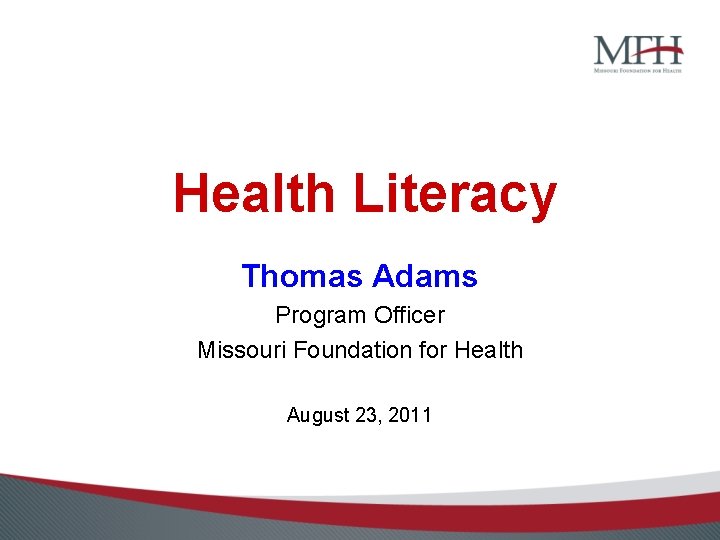 Health Literacy Thomas Adams Program Officer Missouri Foundation